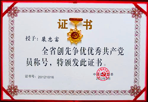 我社理事长裴忠富同志于二零一零年四月被四川省人民政