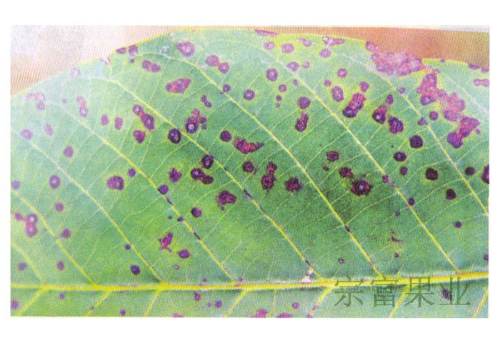 核桃褐斑病主要为害叶片和嫩梢。叶片染病呈灰褐色圆形至不规则形状病斑,后期病部生出黑色小点,即病菌分生孢子盘和发生孢子干。发病生的叶片枯焦,提早落叶。嫩梢染病病斑黑褐色,长椭圆形略凹陷。苗木染病常形成枯梢。