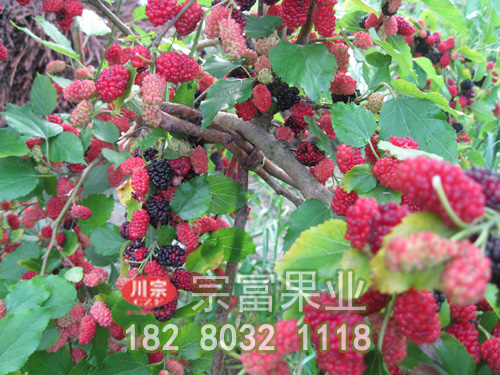 四季果桑从台湾引进,树形开展,发条旺盛,母栽400-450株,叶片小果子,成熟时呈紫黑色,酸甜可口。第一季产果在5月上旬,春季采摘期35天左右。第一季为全年产量的80%,全年亩产2500kg以上,品种适应性广,抗病性好,我国大部分地区多能栽种。北方地区可以大棚栽种,果子可以鲜食,又可加工。