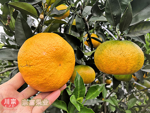 ②果实特征:高扁圆形,果皮薄,光滑,油胞细小而凸起。果皮深橙色,包着紧,但易剥离。单果重150g左右,果顶平,有不明显的印痕,果基平,囊瓣9瓣,果肉橙色,外种皮较光滑。