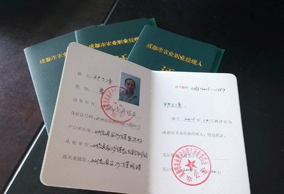 2013年12月4日-12月7日,双流县农村发展局农经科组织双流县农民专业合作社工作人员参加“2013年成都市农村职业经理人知识更新培训”,我合作社4名工作人员参加了本次培训,并且通过考核,取得“农村职业经理人证书”。