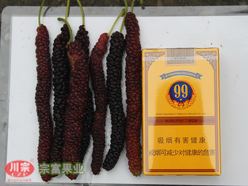 台湾长果桑我国大部分地区都可栽种,母栽280-300株,中高杆养成,长江以南5月上旬成熟,果长8-12cm,直径0.7—1.2cm,长条形,是唯一没有酸味的果桑品种,高糖度达20度以上,口感特别好,观赏效果极佳,当年栽种,当年少量挂果。南方地区四季有果,第二年250kg以上亩产,丰产时为亩产2500kg以上,是目前适合鲜食的佳品种。