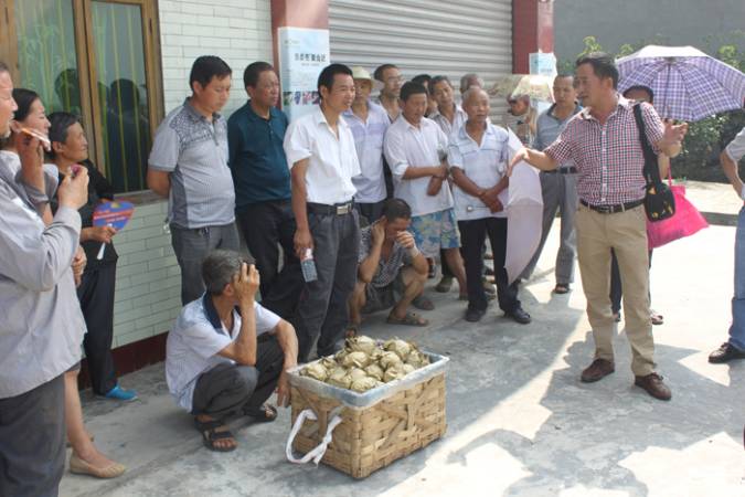 2014年7月5日,乐至县中和镇、大佛镇、石佛镇及金堂县土桥镇、金龙镇的相关领导莅临我社位于眉山市东坡区三苏乡陈沟村圆黄梨生产基地进行参观交流。参观当日各镇相关领导与我社理事长裴忠富先生、陈沟村各相关负责人展开了热烈的经验分享、技术交流等。我社在陈沟村协助发展圆黄梨种植已有十多年,种植面积达6000亩,所产圆黄梨销往省内外各大城市,农户收益客观,成为当地农业支柱产业。