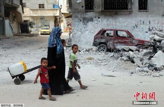 资料图:当地时间2014年7月19日,加沙,以色列对加沙地带发动地面进攻,民众携财产逃难。