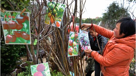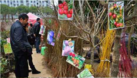 据了解,今年苗木市场有个新变化:来龙泉。双流等地的苗木经营户们,将猕猴桃、樱桃、果桑等50多种水果成熟后的果实图片挂在果苗上,用“识图买果苗”的销售方式,既直观吸引人,又方便顾客选购。