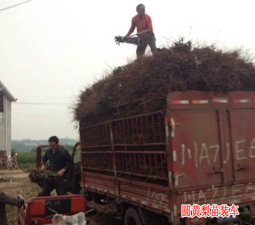 四川省眉山市东坡区龙兴镇再次对我单位充分考查、核实、论证后定购圆黄梨苗20000株。图片为:我单位工作人员正在果苗装车中