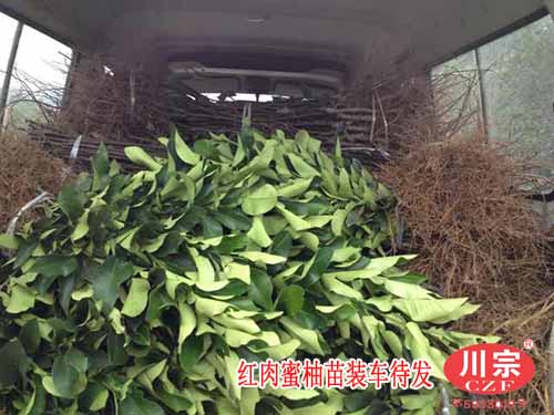 红肉蜜柚苗300株由成都市双流县杨先生定购.此图是红肉蜜柚苗装车待发