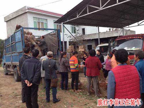 脆红李苗20000株由重庆丰都杨先生定购,此图:脆红李苗起苗现场、脆红李苗正在装车