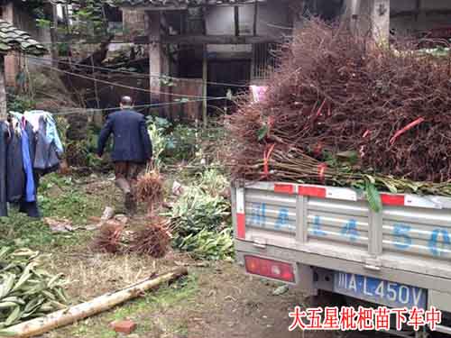 大五星枇杷苗7000株由遂宁蒲总定购,此图:大五星枇杷苗下车中