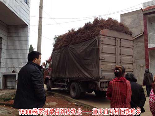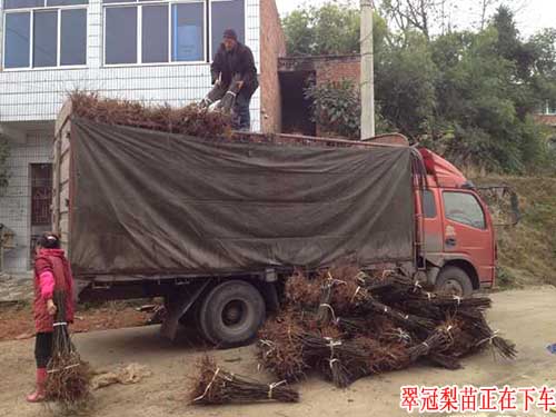 翠冠梨苗76000株由重庆市万州区铁峰乡定购,此图:翠冠梨苗正在下车中