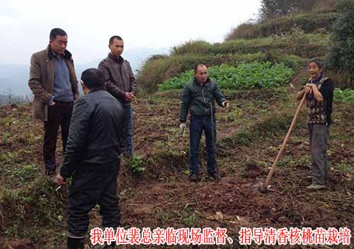 四川省宜宾市高县对我单位充分考查、核实、论证后定购72000株清香核桃苗。此图:裴总亲临现场监督、指导清香核桃苗栽培