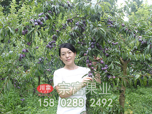 脆红李苗:脆红李,树势中庸,树冠自然开心形。果实正圆形或近圆球形,平均单果重16~25克,大单果重40克。果皮紫红色,果肉黄色或偶带片状红色。缝合线正,缝沟浅,果点黄色,较密,大小均匀。果粉厚,灰白色,肉质脆,味甜,可溶性固形物12.7~13.27%,可溶性总糖10%,总酸0.56%,维C2.6毫克/100克,核小离核,可食率96.8%,晚熟(8月中旬)。