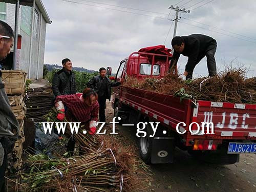 胭脂脆桃苗1000株和五月脆桃苗4000株由遂宁市浴风镇杨总购买。此图:桃苗正在装车